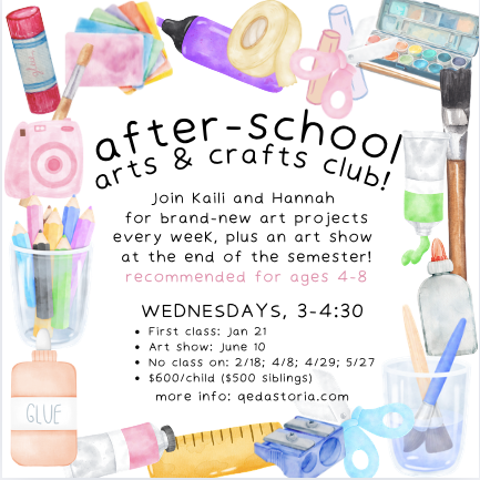 Paint! Collage! Gelliprinting! We'll do it all at our weekly Arts & Crafts Club with Miss Kaili and Miss Hannah, culminating in a big art show! Recommended for ages 4-8.